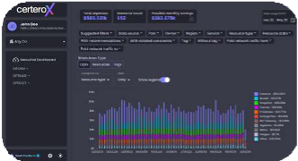 CerteroX unifies billing, usage, and resource metadata from AWS, Azure, GCP, and KBs into a single, business-ready platform. View spend by product, team, environment, cost center, tag/label, account/subscription/project, cluster/namespace, with drilldowns from executive summaries to engineer-level detail.